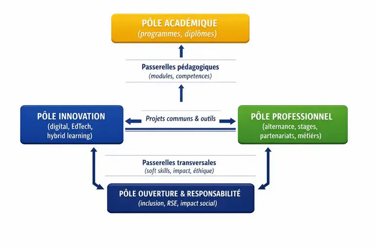 Le groupe mène également plusieurs chantiers stratégiques : modernisation des outils pédagogiques, développement de nouvelles formations, renforcement des processus qualité et structuration de dispositifs d’accompagnement pour les étudiants et les formateurs. Ces projets s’inscrivent dans une dynamique de progrès durable et d’innovation éducative.